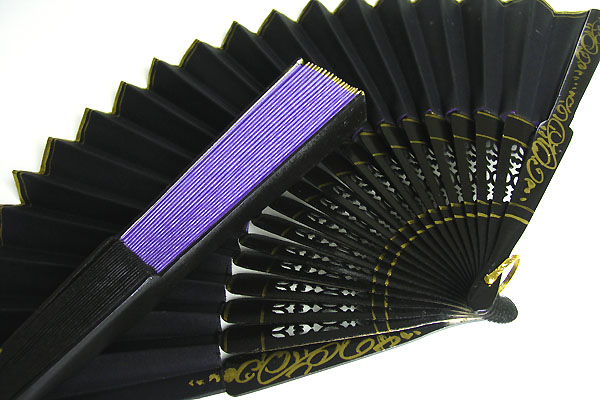 骨組み部分は黒になり金色のペイントで手描き模様が施されています。骨組みの中央部分には透かし彫りが入っていてアバニコの先端部分には2枚の生地をしっかり固定する為に金色のテープによって仕上げられています。