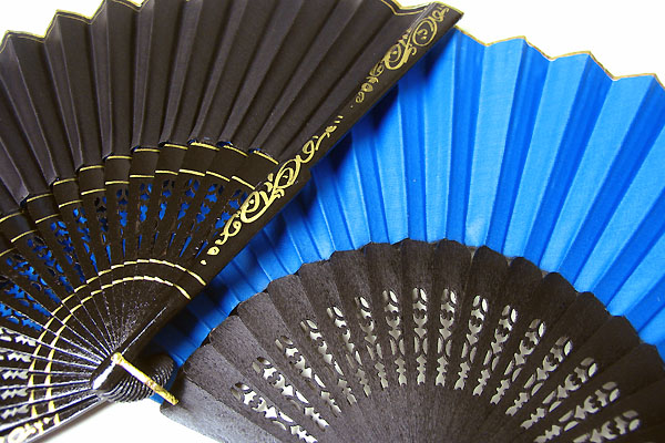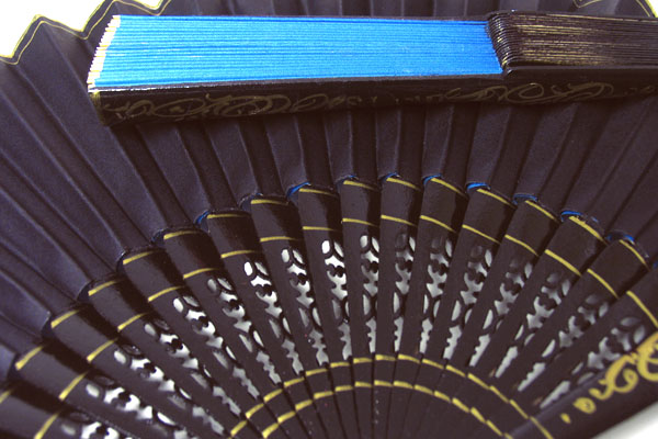 骨組み部分は黒になり金色のペイントで手描き模様が施されています。骨組みの中央部分には透かし彫りが入っていてアバニコの先端部分には2枚の生地をしっかり固定する為に金色のテープによって仕上げられています。