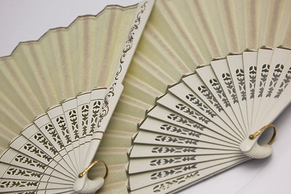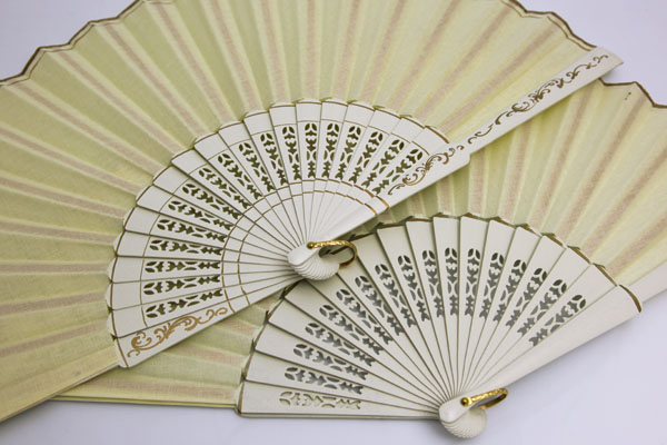 骨組み部分もクリーム色になり金色のペイントで手描き模様が施されています。骨組みの中央部分には透かし彫りが入っていてアバニコの先端部分には2枚の生地をしっかり固定する為に金色のテープによって仕上げられています。