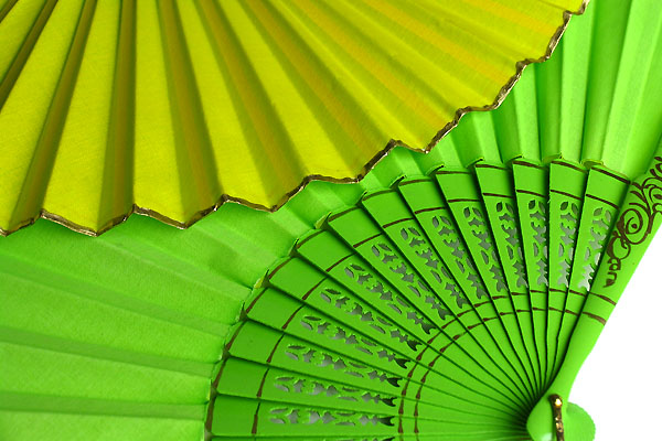 骨組み部分はピスタチオになり金色のペイントで手描き模様が施されています。骨組みの中央部分には透かし彫りが入っていてアバニコの先端部分には2枚の生地をしっかり固定する為に金色のテープによって仕上げられています。