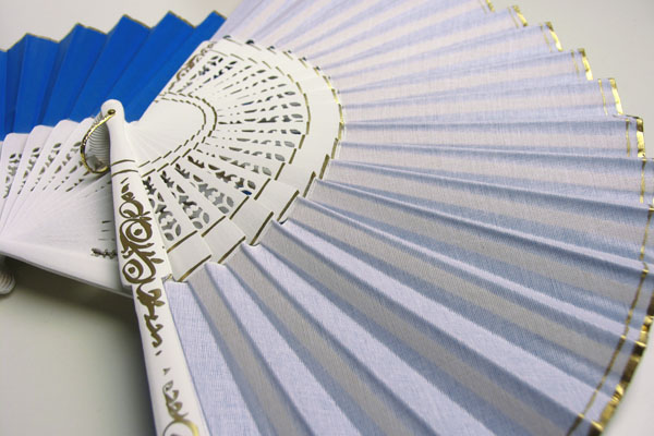 骨組み部分は白になり金色のペイントで手描き模様が施されています。骨組みの中央部分には透かし彫りが入っていてアバニコの先端部分には2枚の生地をしっかり固定する為に金色のテープによって仕上げられています。