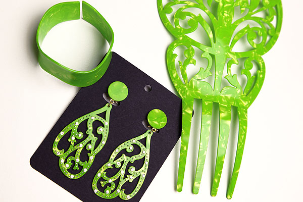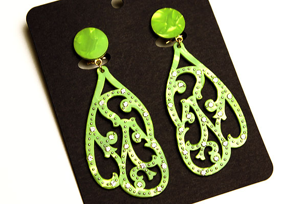 | 耳飾り(高さ7.5cm/幅3.5cm) | グリーン+スワロフスキー製ラインストーン |