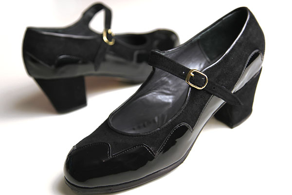 アンドレア・プロ・オーラス・黒・本体スエードxエナメル・幅広(AA)仕様