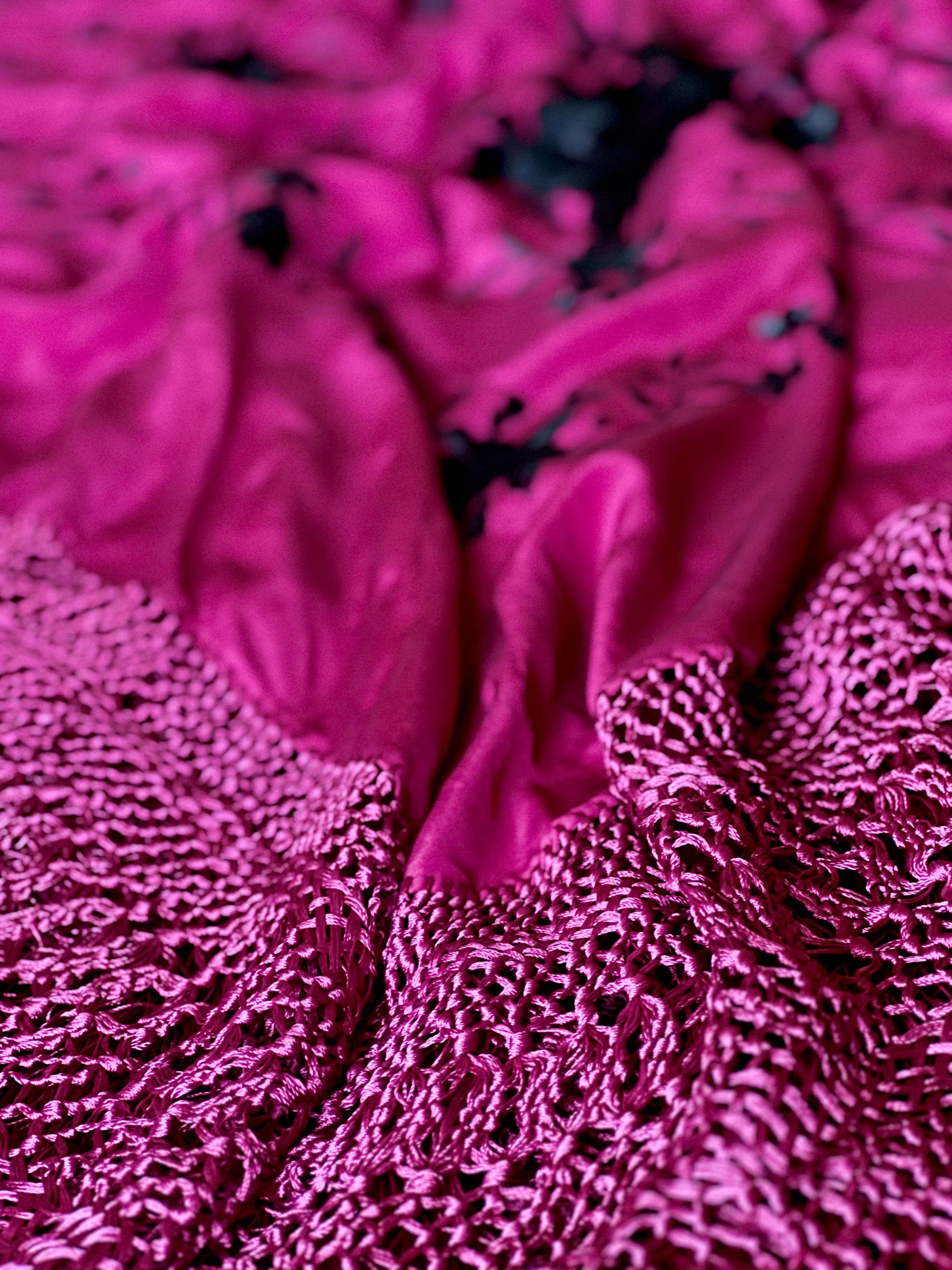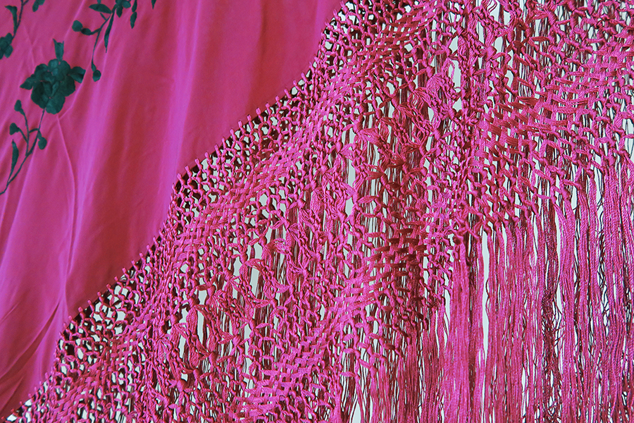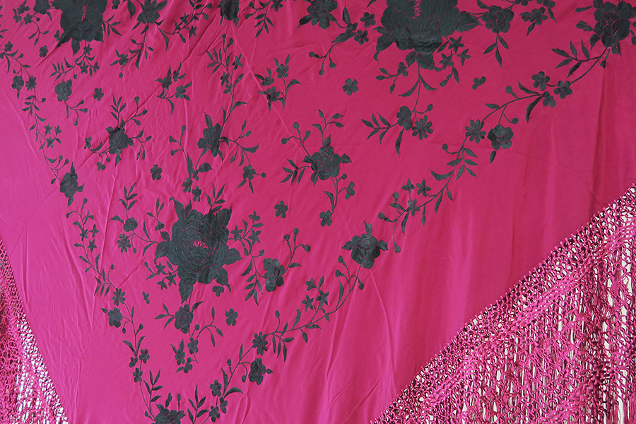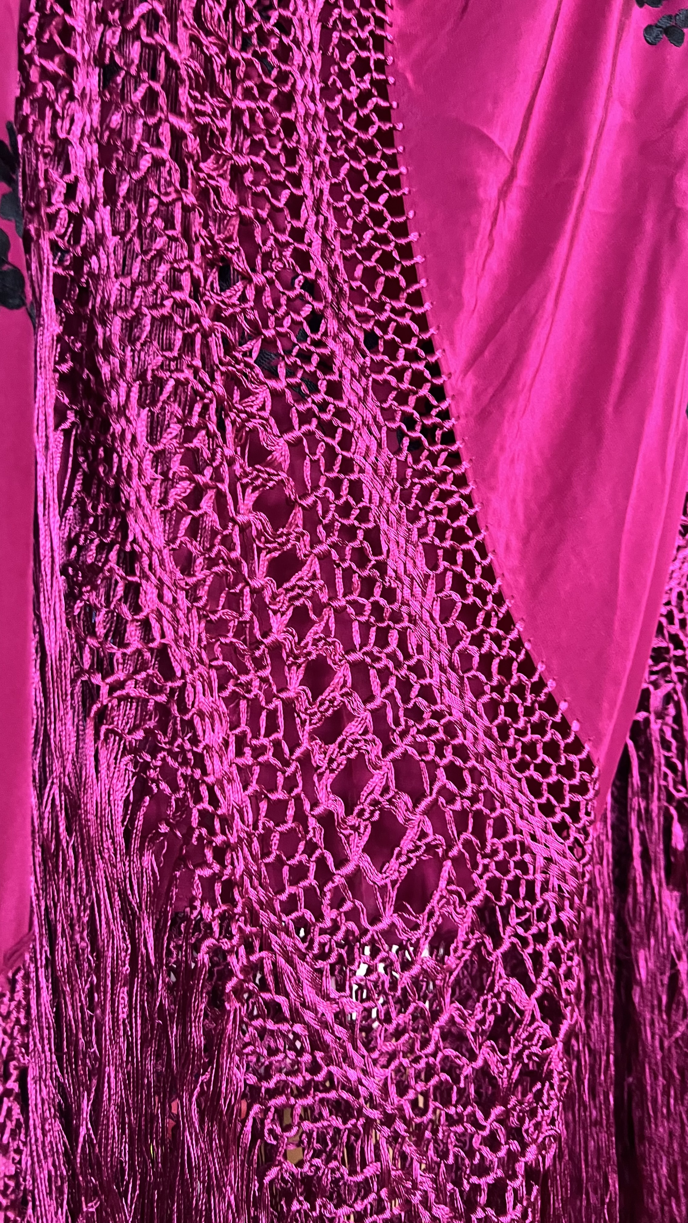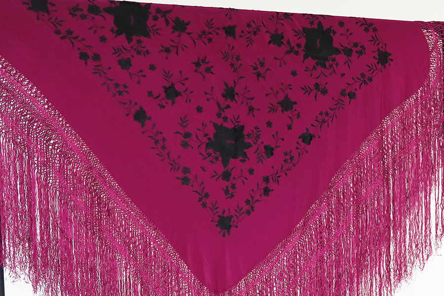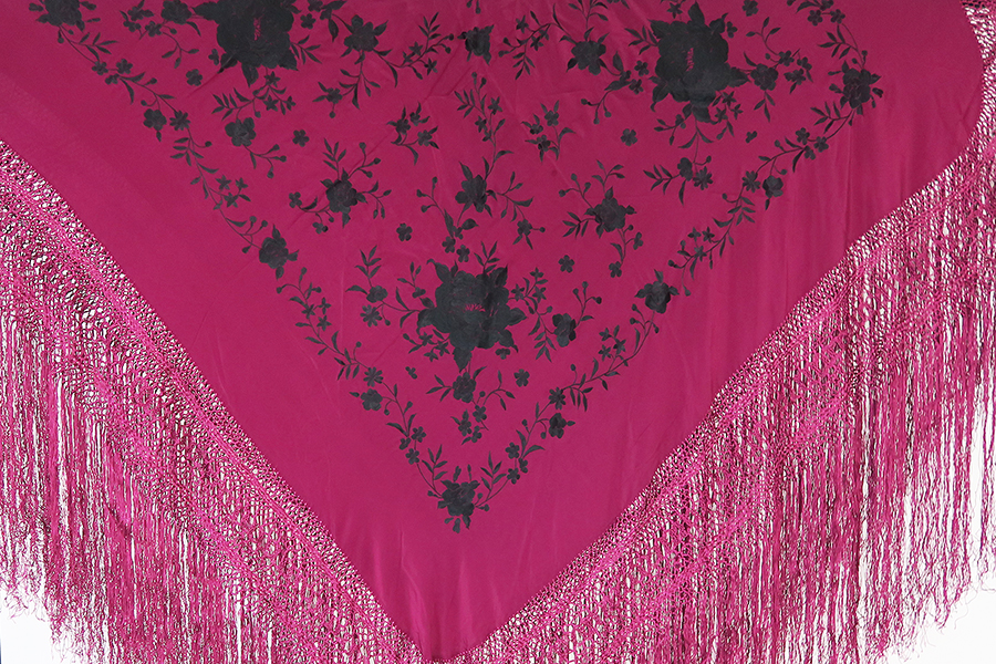 ✓このマントンはボルドー地に黒刺繍で仕上げてある135/140cmのサイズのマントンです。 写真でご覧頂けるよう、刺繍やフリンジの豪華さは最高級品のマントンの証です!