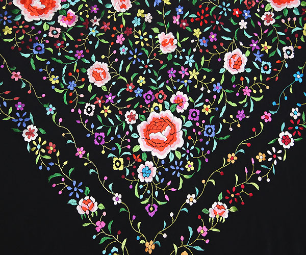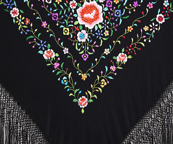 ✓このマントンは黒地に鮮やかなカラー刺繍のシルク製マントンです。135cmの大きさでフリンジが少ないので初心者にとても取り扱い易い高級品です! 130cm/135cmの大きさの高級品です!