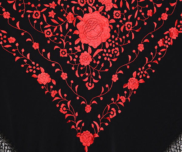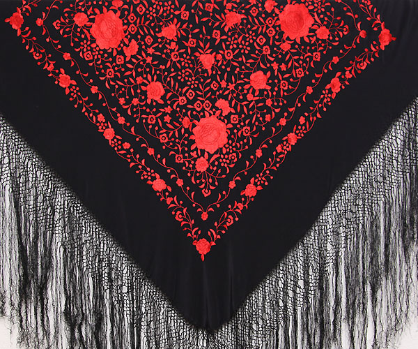 ✓このマントンは黒地に鮮やかな赤刺繍のシルク製マントンです。135cmの大きさでフリンジが少ないので初心者にとても取り扱い易い高級品です! 130cm/135cmの大きさの高級品です!