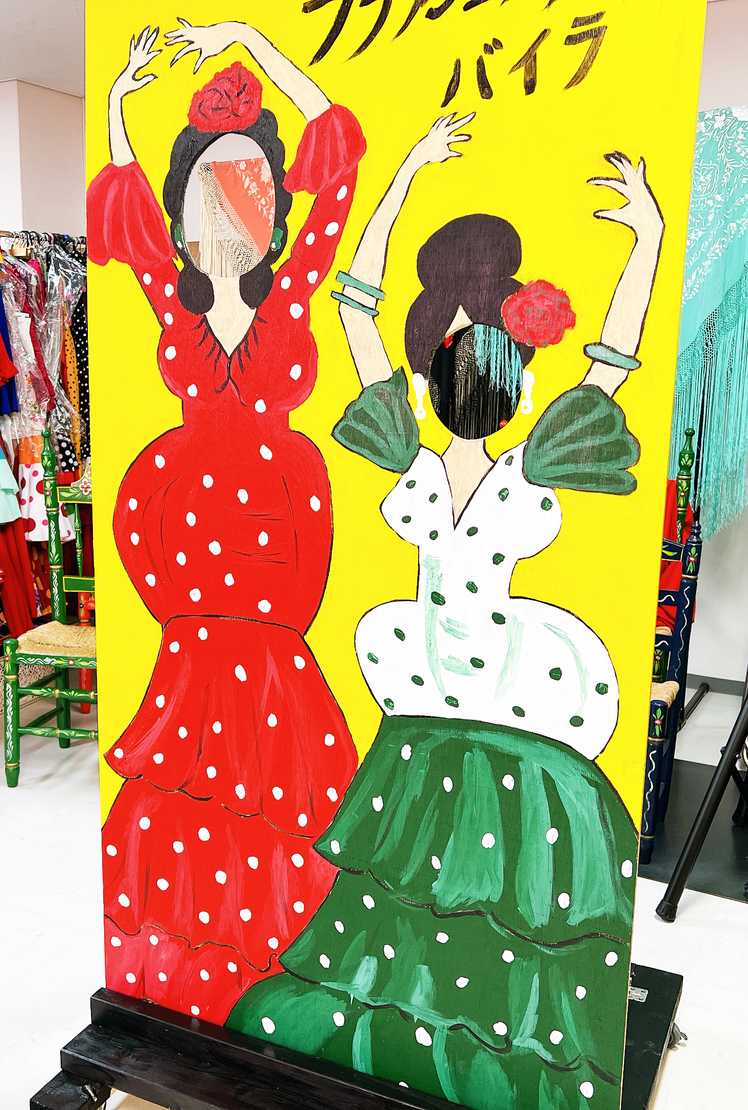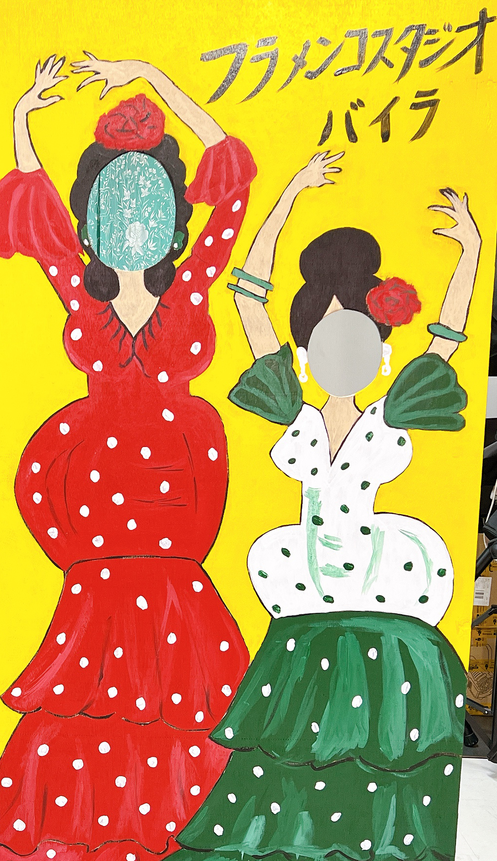 スタジオ用宣伝、屋外・屋内での展示会、イベント、発表会等での顔出しパネルとして、フラメンコチックな等身大パネルを製作します。ご覧いただいてる写真の絵柄(色合い)はあくまでも参考見本となり、ご提出頂くデザインでの製作が可能です。