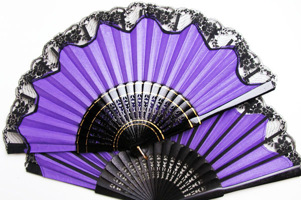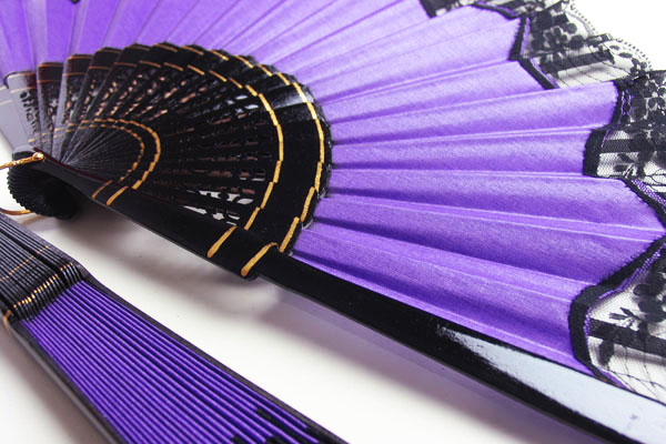 アバニコ上部のレース部分と、透かし彫りの入った骨組み部分は黒で仕上げ、布部分を華やかな紫色で仕上げたアバニコです。