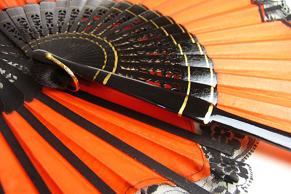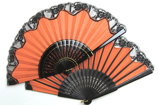 アバニコ上部のレース部分と、透かし彫りの入った骨組み部分は黒で仕上げ、布部分を華やかなオレンジ色で仕上げたアバニコです。