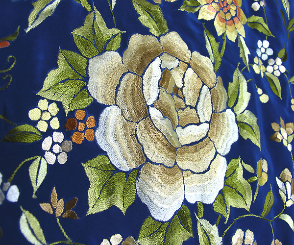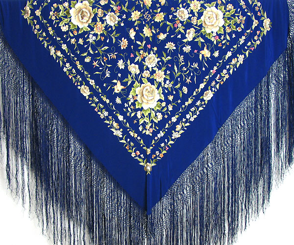 ✓このマントンはとても珍しい色合い、紺地に金+カラー刺繍のシルク製マントンです。 フリンジ等も高級仕上げで重量感があり最高のマントンに仕上がっております。