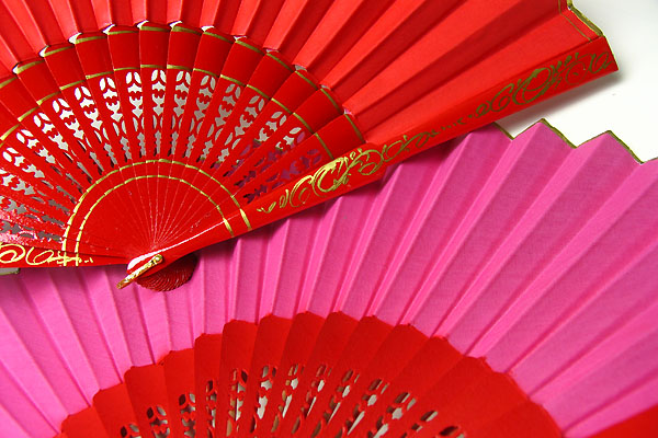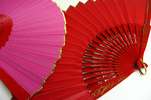 骨組み部分は赤になり金色のペイントで手描き模様が施されています。骨組みの中央部分には透かし彫りが入っていてアバニコの先端部分には2枚の生地をしっかり固定する為に金色のテープによって仕上げられています。
