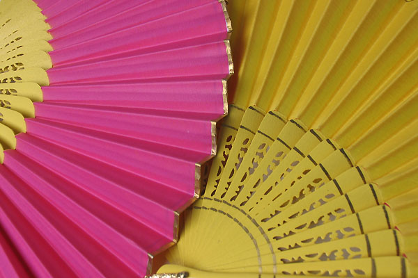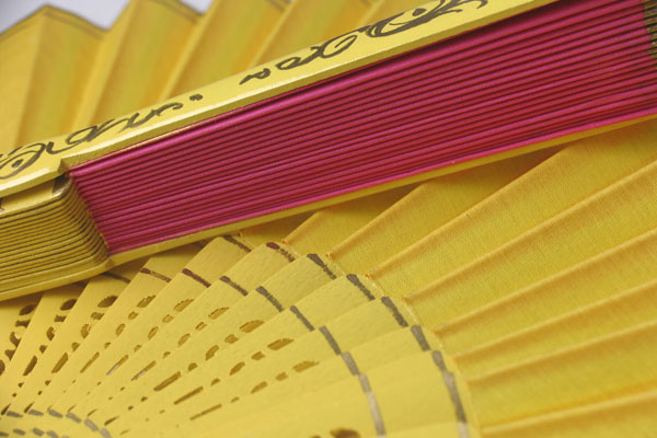 骨組み部分は黄色になり金色のペイントで手描き模様が施されています。骨組みの中央部分には透かし彫りが入っていてアバニコの先端部分には2枚の生地をしっかり固定する為に金色のテープによって仕上げられています。